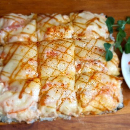 Нори, рис, сливочный сыр, помидор, сыр твердых сортов, спайси соус, и лосось